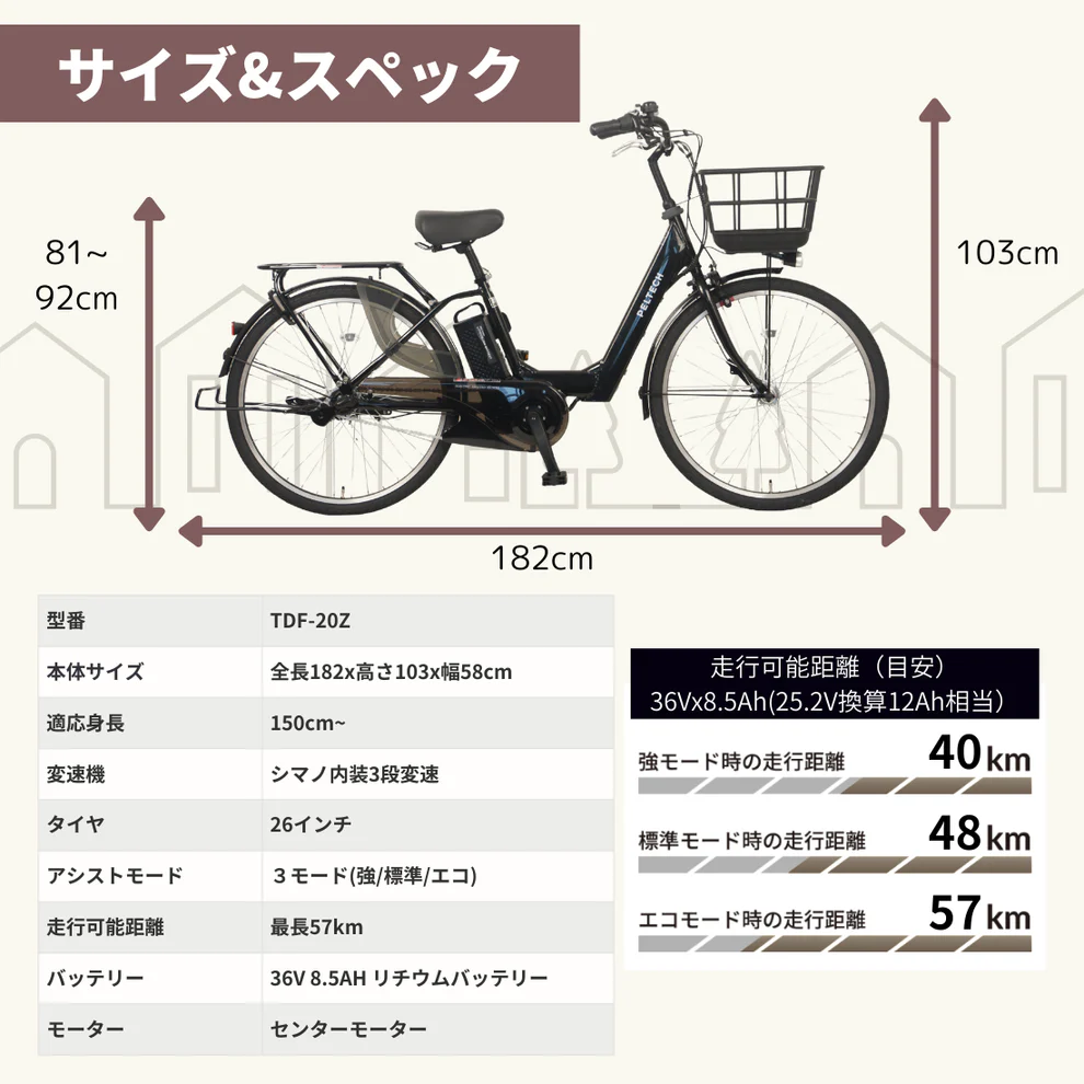 走行距離:エコモード時最長57km (メーカー指定走行パターンに基づく)